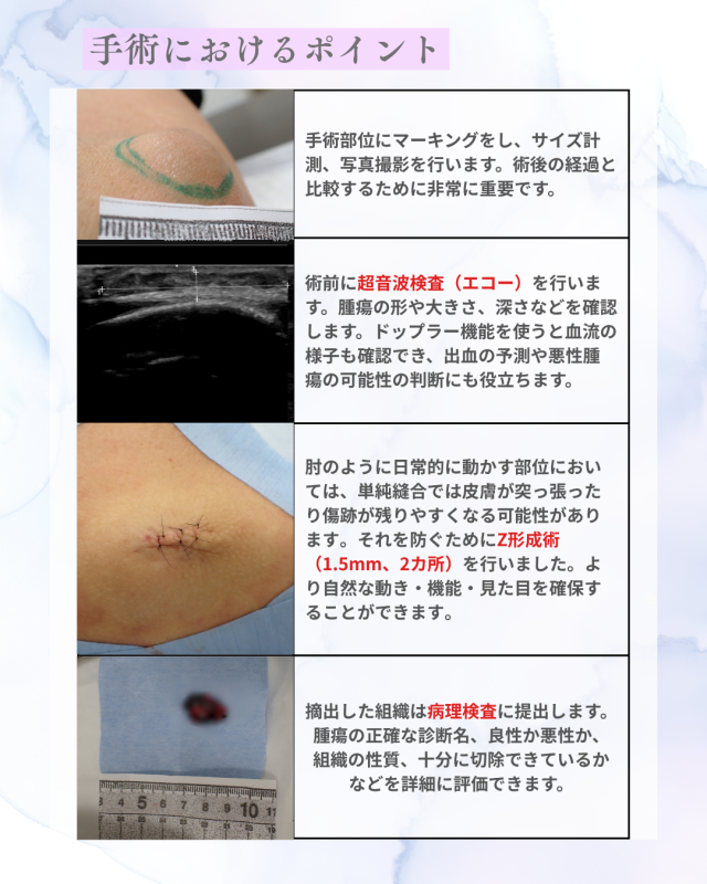 血管腫などの皮下腫瘍の手術におけるポイントは以下の通りです。